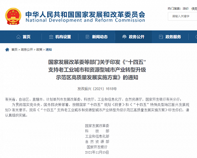 “十四五”支持老工業(yè)城市和資源型城市 產業(yè)轉型升級示范區(qū)高質量發(fā)展實施方案